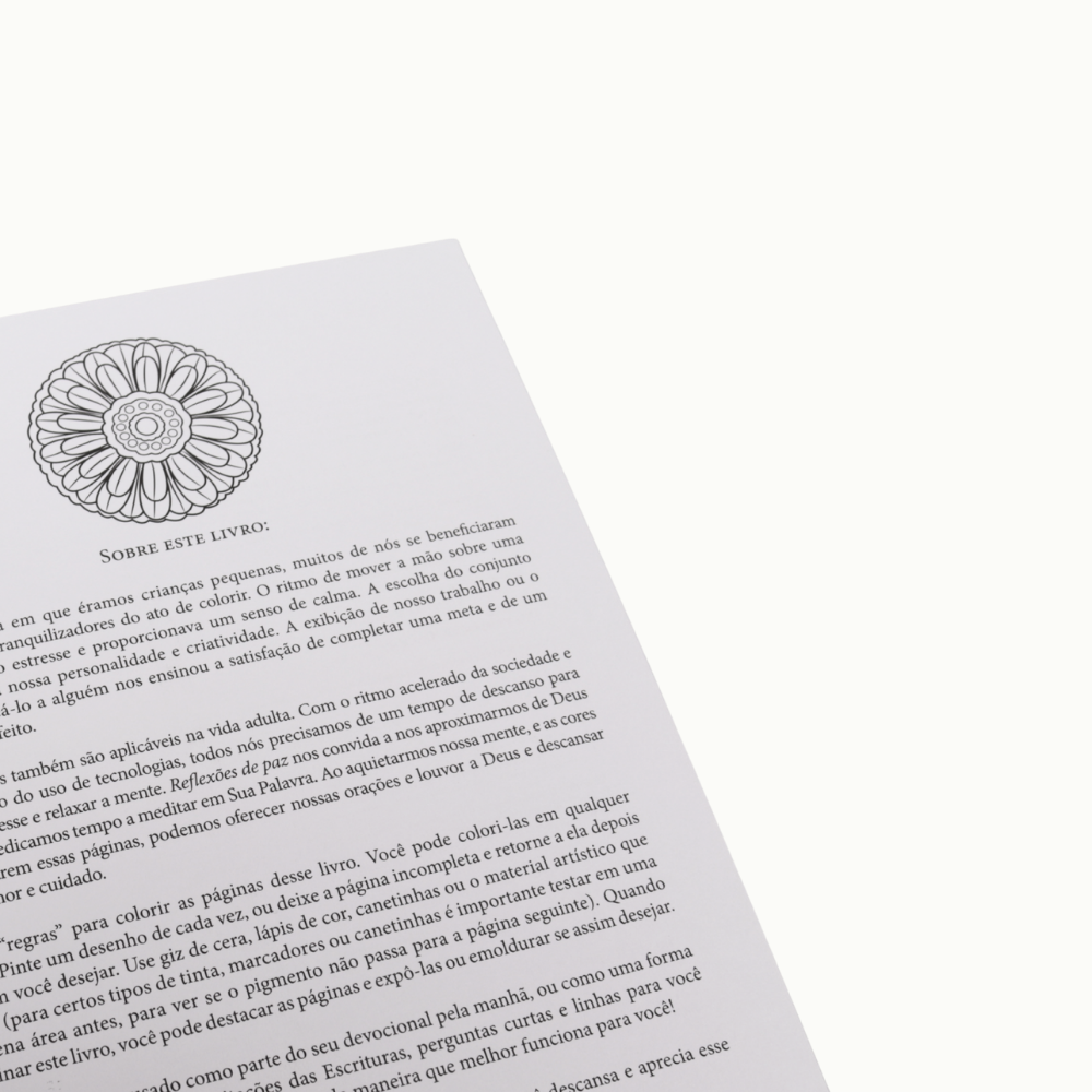 Este livro é uma pausa silenciosa no ritmo agitado da vida. Cada página conduz à serenidade, incentivando uma jornada devocional simples, criativa e profundamente significativa.
