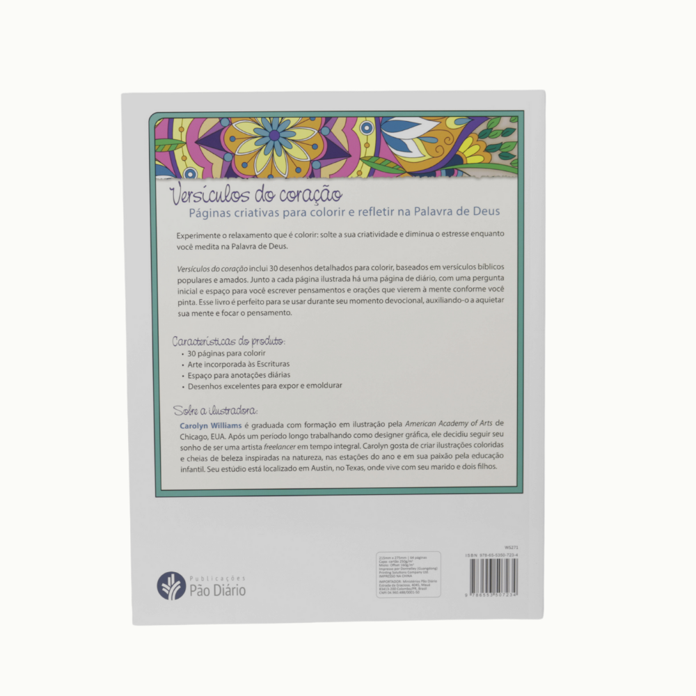 Versículos do Coração transforma a leitura bíblica em uma experiência sensorial. Ao colorir, o leitor interioriza verdades eternas enquanto relaxa e se conecta com Deus de maneira visual e afetuosa.