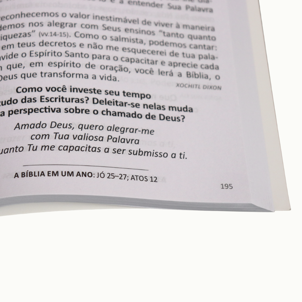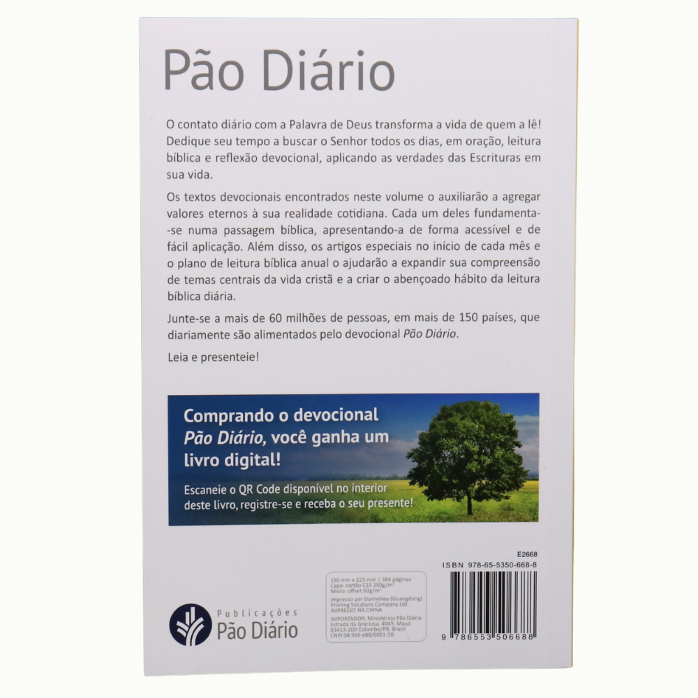 Mais do que um simples devocional, Pão Diário oferece 365 reflexões edificantes que encorajam o crescimento espiritual em todas as fases da vida. Cada leitura conduz o leitor a confiar mais plenamente no Senhor, renovar seu amor por Deus e compartilhar o evangelho com as pessoas ao seu redor. Com linguagem clara e aplicação prática, este devocional transforma a rotina familiar em um momento de louvor, oração e aprendizado.