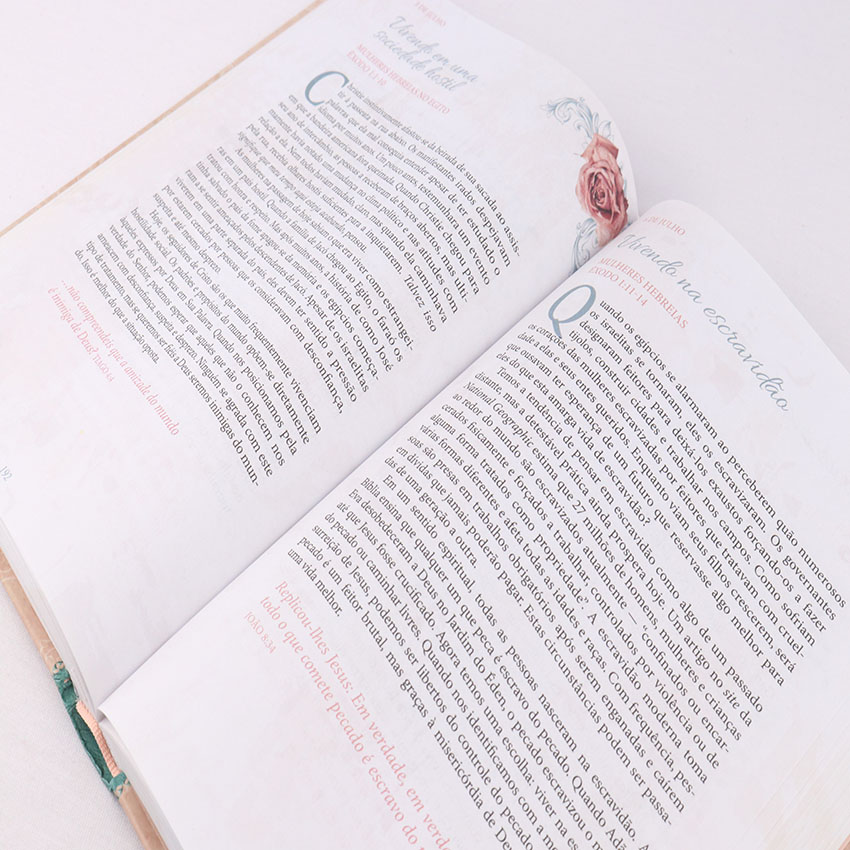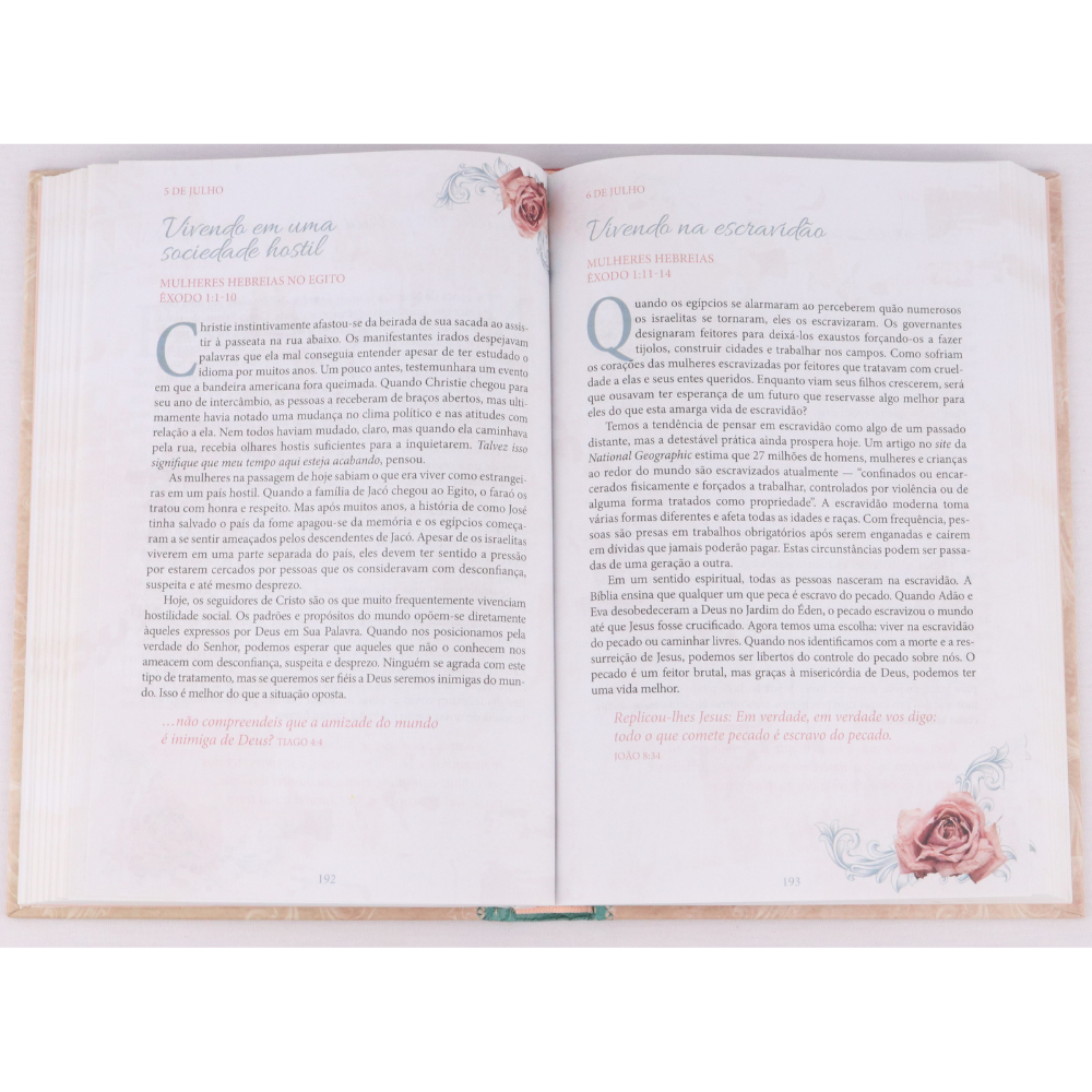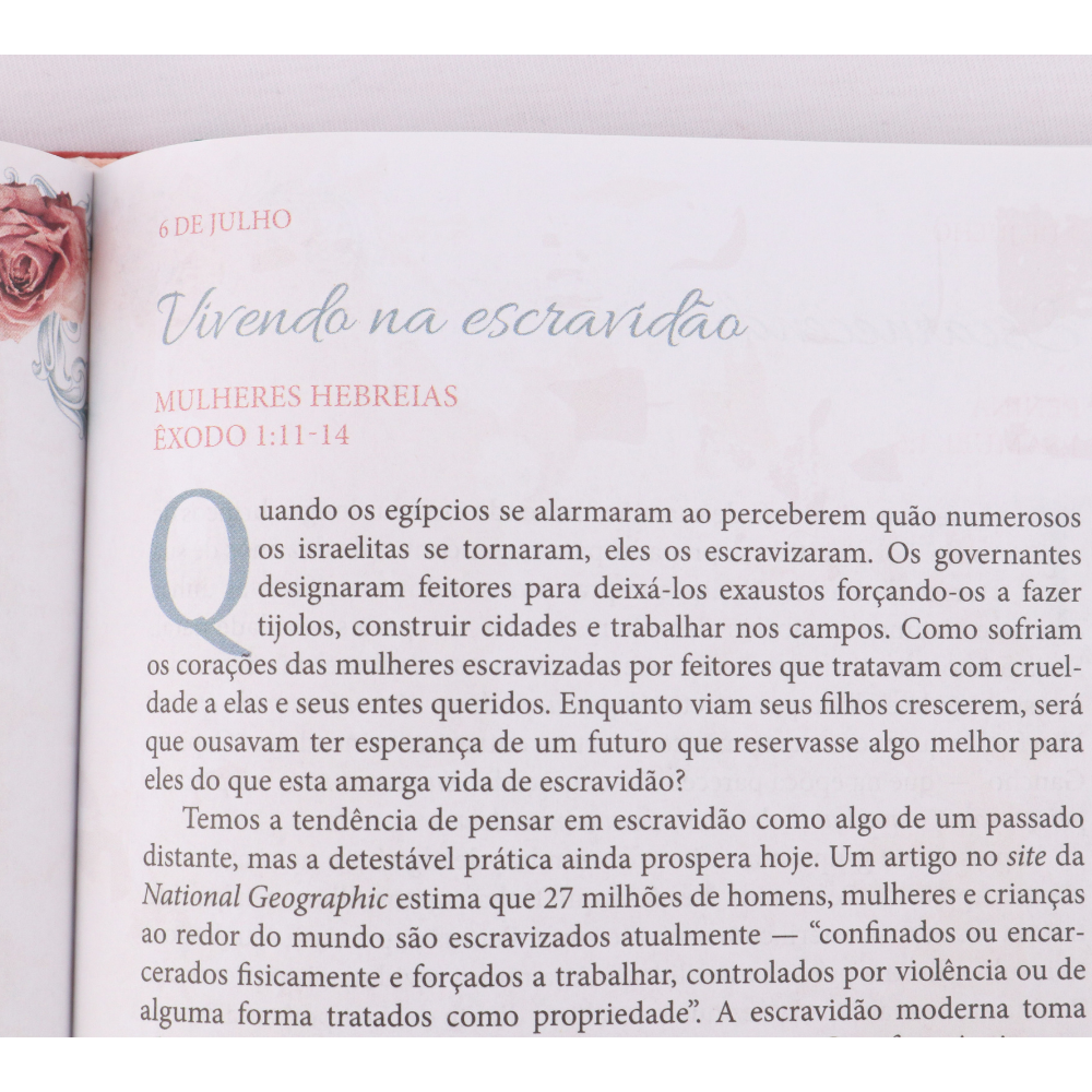 Para atender às suas preferências e necessidades, “Um Ano com as Mulheres da Bíblia” está disponível em duas belíssimas opções de acabamento, ambas projetadas para acompanhar você nesta jornada de um ano: capa brochura, com orelha e capa dura, mais resistente e durável, perfeita para a mesa de cabeceira ou para ser um item de destaque em sua estante.